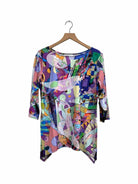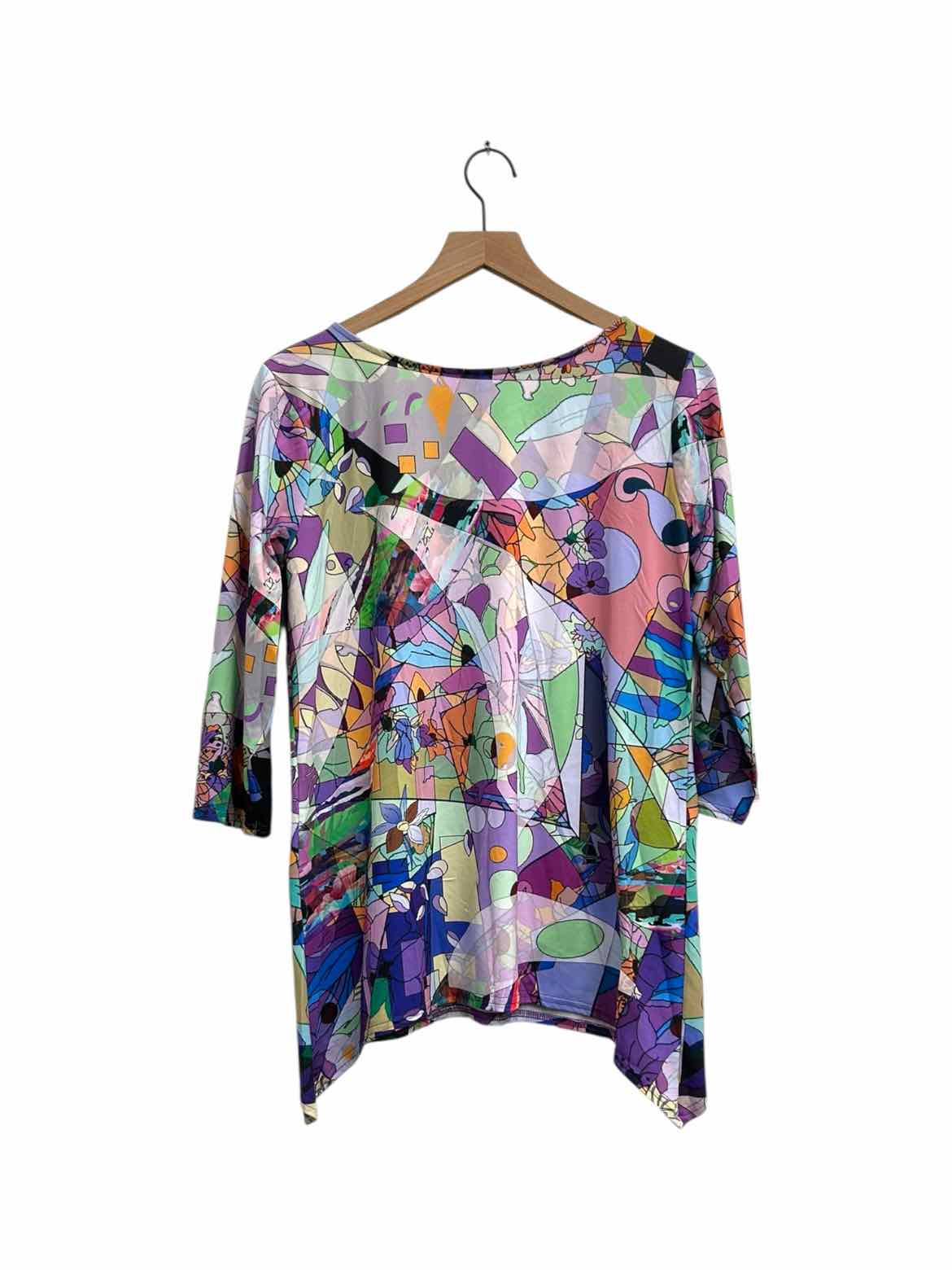 PECK & PECK PUR/GRN/PNK ABSTRACT Women Size L Blouse