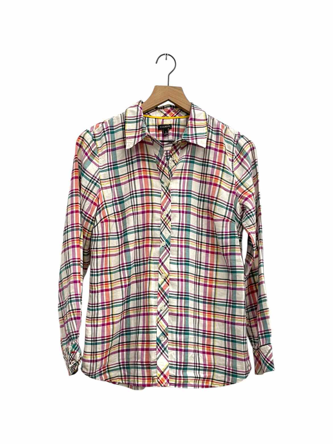 TALBOTS PUR/WHT/TEAL Plaid Women Size S Blouse